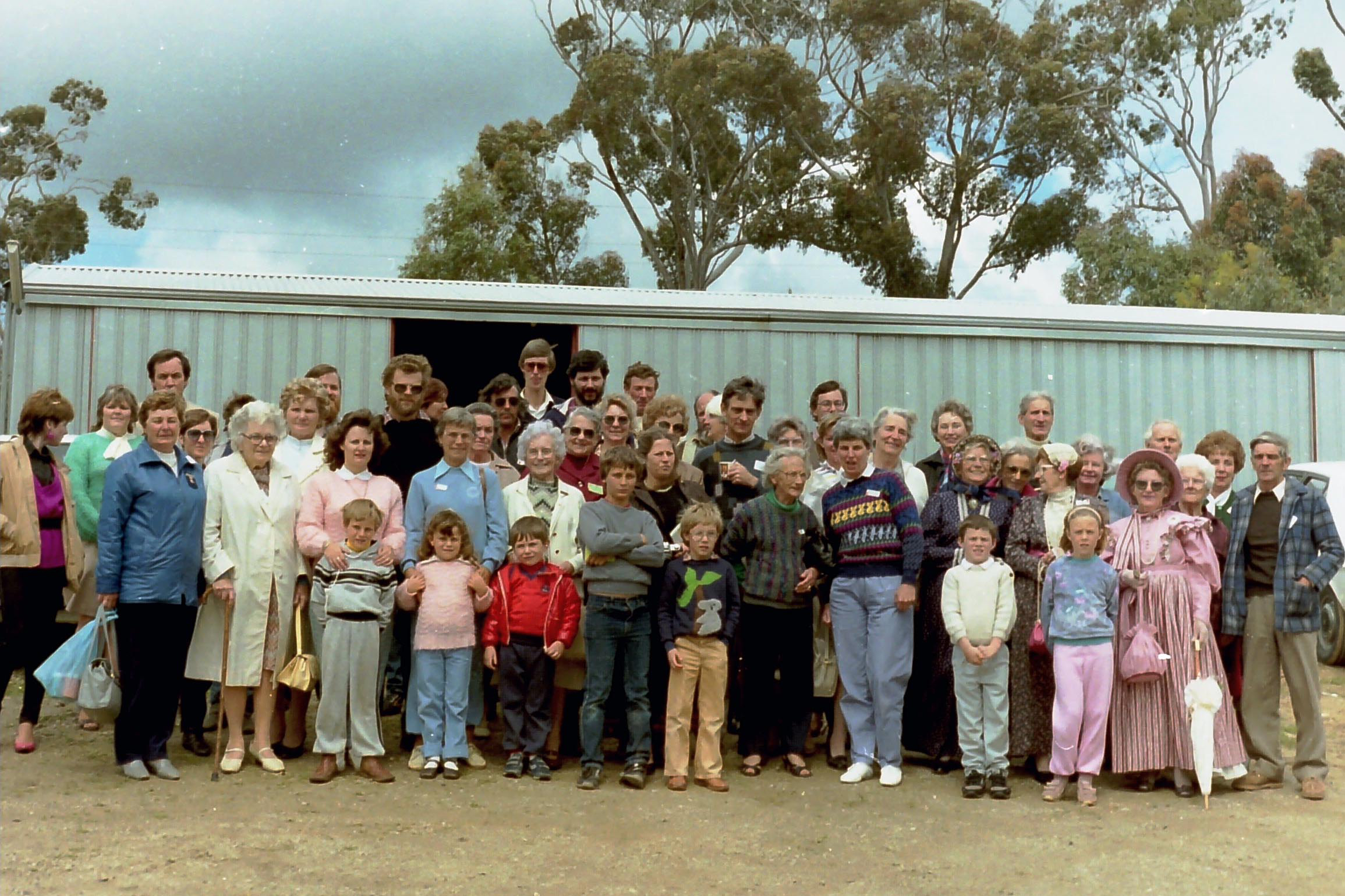 On October 19th, 1986, 250 people met at the Houghton Oval. Except for several visitors, they were all descendants of Jacob, Benjamin, William and John Pitman, who came to Australia from England in the years 1838 to 1851. Their story is told in the book The Australians of a Branch of the Pitman Family which was printed in 1954. Much of the work needed to produce this book was done by Miss Haidee Pitman, who was present at the reunion (aged 87 years).