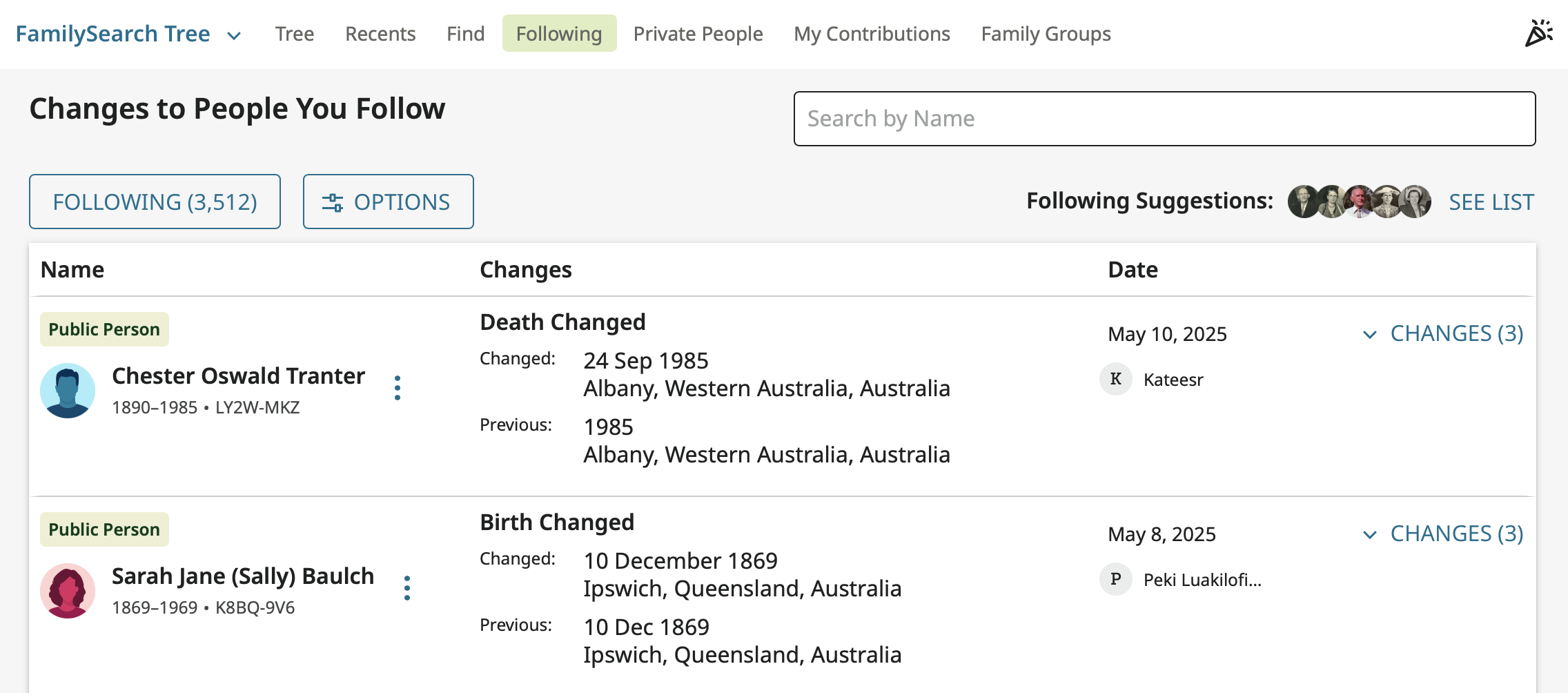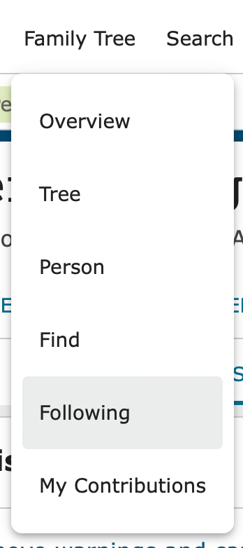 You can also choose Following from the Family Tree menu to view the list of changes at any time.