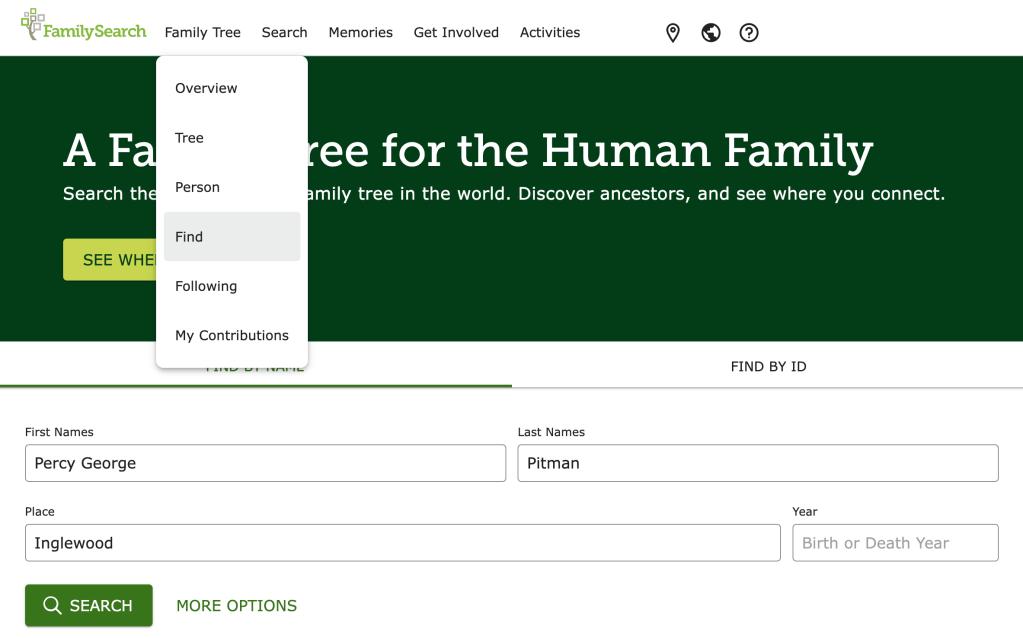 - Search menu, Family Tree