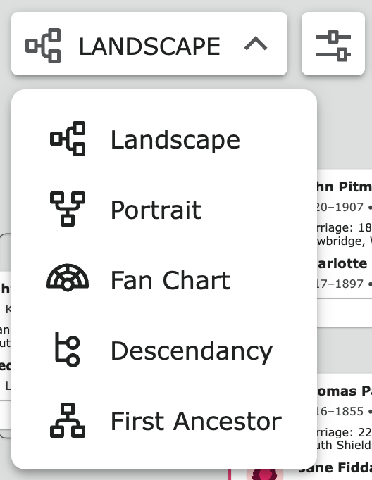 How the tree is displayed will depend on the settings you last used when viewing trees. The example below uses the Portrait option.